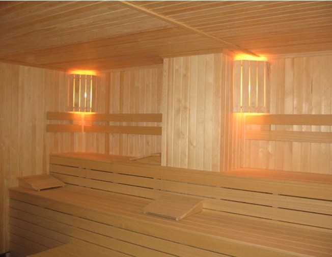 利用桑拿爐燒烤上面的火山石、產生干熱的蒸汽、釋放的礦物能量介質,滲透人體體內,活化器官功能,并排出毒素、汗液等、使身體機能電位平衡,房體為進口白松,經過高溫脫脂處理,用后不變形、防高溫、不燥裂、防酶防潮。