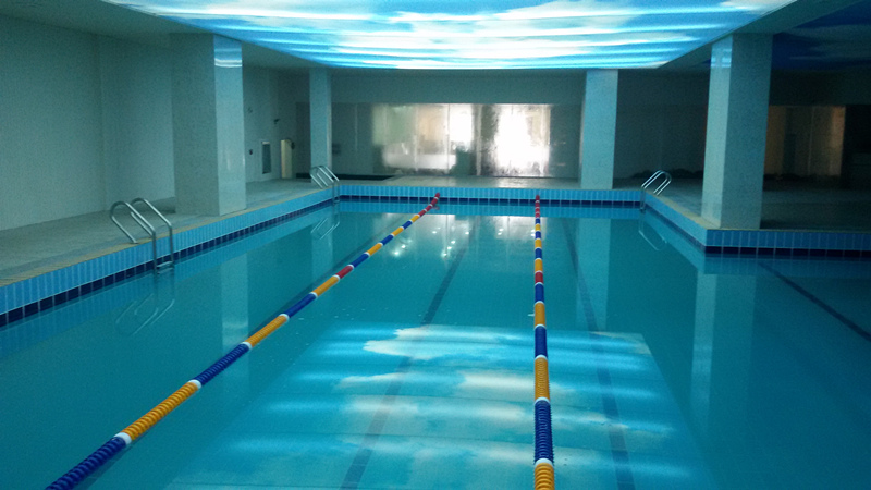 水處理機(jī)房為地下。池水自流到設(shè)備,處理后的清水經(jīng)水泵送到池中。水處理過(guò)程中,水泵在主機(jī)的后面。當(dāng)?shù)孛婊蛩娴耐瑢記](méi)有空間設(shè)置機(jī)房時(shí),可作地下機(jī)房系統(tǒng),即地下機(jī)房,但必須滿(mǎn)足機(jī)房地面低于池水面4.5米以上。地下機(jī)房系統(tǒng)的第一個(gè)設(shè)備是流量自動(dòng)調(diào)節(jié)啟閉器(用作停電時(shí)自動(dòng)關(guān)閉和電壓不穩(wěn)時(shí)隨時(shí)自動(dòng)調(diào)節(jié)流量),然后是主機(jī)、曝氣平衡吸水箱(選用請(qǐng)參照曝氣平衡吸水箱型號(hào)尺寸表)、水泵、換熱器和消毒設(shè)備。同時(shí)機(jī)房?jī)?nèi)需要設(shè)置集水坑和排污泵(排污量不宜過(guò)小)。此系統(tǒng)設(shè)備多于地上機(jī)房系統(tǒng),投資也高于地上機(jī)房系統(tǒng),地下機(jī)房陰暗潮濕介紹,游泳池水處理設(shè)備工作原理介紹通風(fēng)、排水不如地上機(jī)房系統(tǒng)方便。